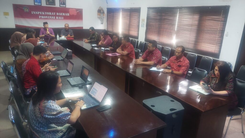Jumat, 15 Maret 2024 bertempat di Ruang Rapat Sabha Adhyasta Madya Kantor Inspektorat Daerah Provinsi Bali dilaksanakan Piloting atas Petunjuk Teknis Pengawasan Isu Kewilayahan Pendidikan dari BPKP Deputi Bidang Pengawasan Penyelenggaraan Keuangan Daerah pada Pemerintah Provinsi Bali