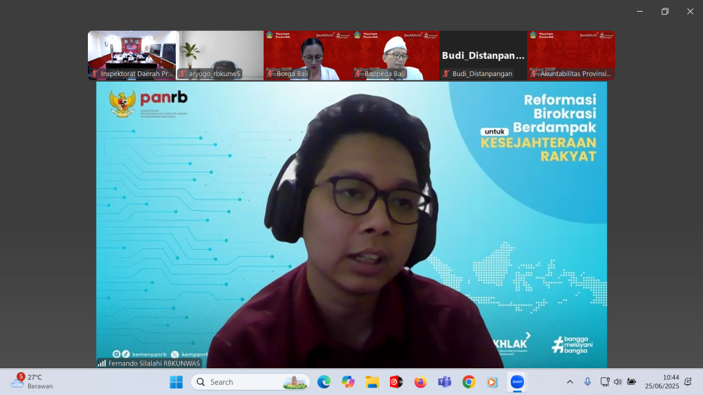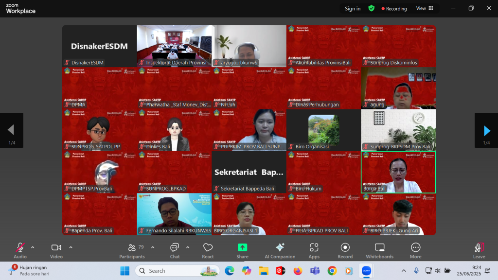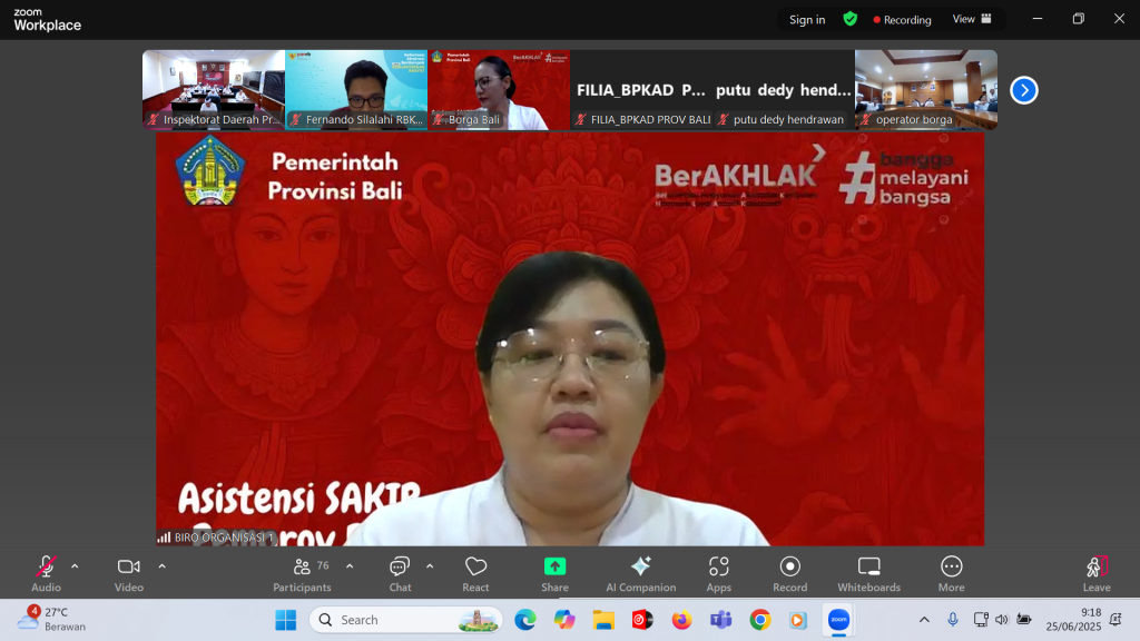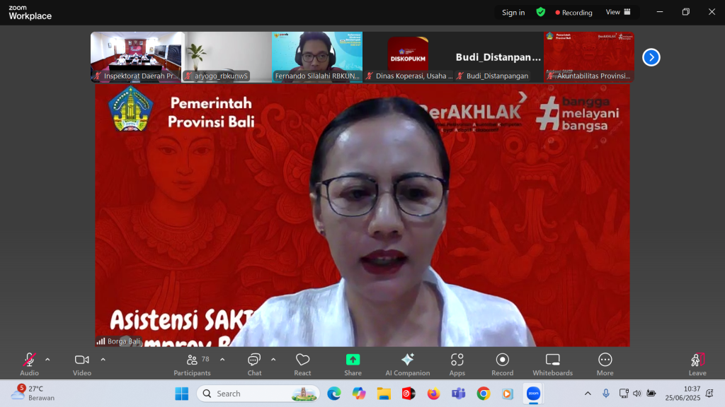 Rabu, 25 Juni 2025 bertempat di Ruang Rapat Sabha Adhyasta Pratama, Inspektorat Daerah Provinsi Bali hadir secara daring dalam Kegiatan Asistensi Pelaksanaan SAKIP Provinsi Bali.