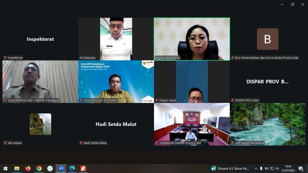 Senin, 21 Juli 2025 bertempat di Ruang Rapat Sabha Adhyasta Pratama Kantor Inspektorat Daerah Provinsi Bali, dilaksanakan secara daring Rapat Koordinasi Rencana Kerjasama antara Pemerintah Provinsi Maluku Utara dengan Pemerintah Provinsi Bali.